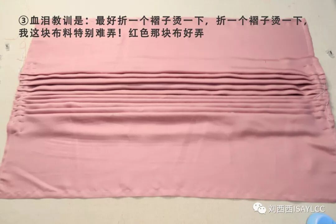 為了使褶子美觀,可以如左圖墊上牛皮紙熨燙;為了使褶子燙的更嚴實,可以噴點水,或蓋上水布、燙布,進行熨燙,找重物壓一晚定型哦~