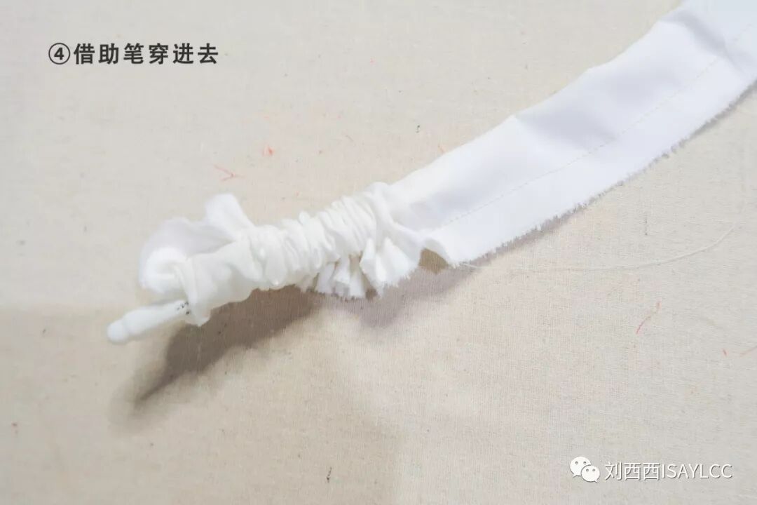 劃重點:可以先做好褶的標記,再撕布(布料可以直接撕)
