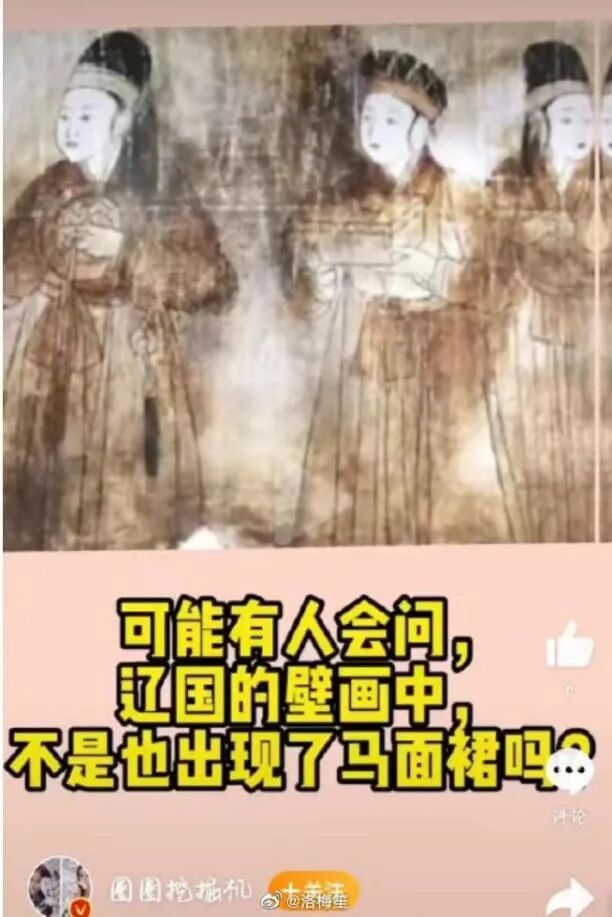 第一:遼代壁畫上的衣服是袍衫,不是裙子。根本就連裙子都不是,怎么可能出現馬面裙?