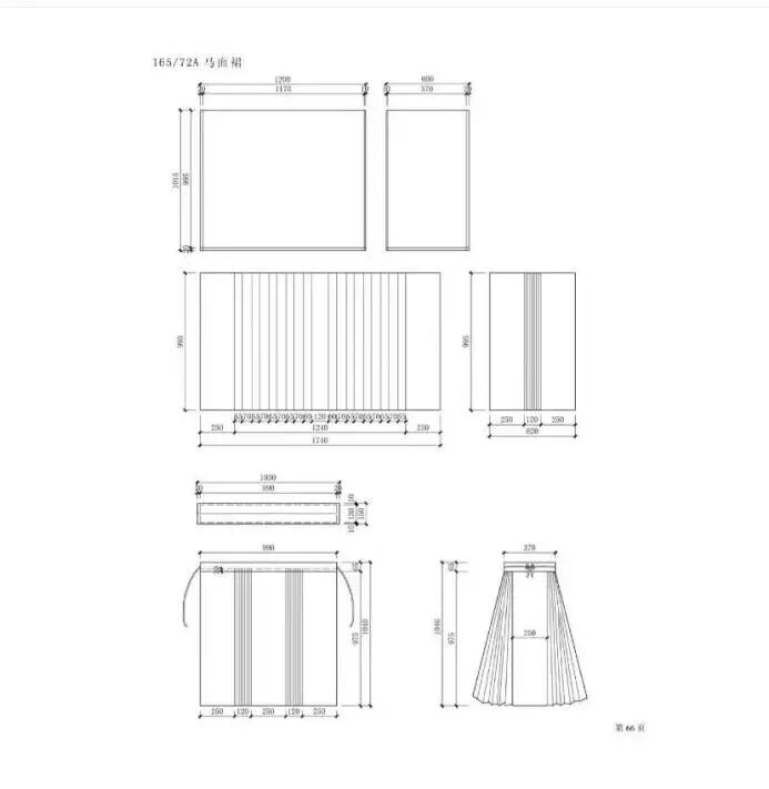 前面一再反復說,馬面裙的三個最基本的結構特征:圍合式、馬面褶和旋裙結構。從漢裁的角度來看,闌干裙的剪裁方式已經開始脫離甚至違背原有的漢服體系。