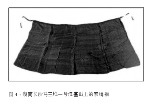 距今2100年西漢馬王堆一號墓出土的單裙,與先秦時期相比,基本上沒有本質上的區別,只是裁片大小、緣邊等細節變化。