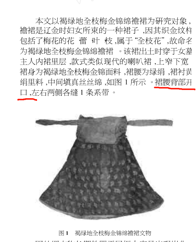 這條裙子是套穿的,根據《褐綠地全枝梅金錦綿襜裙的研究與仿制》:
