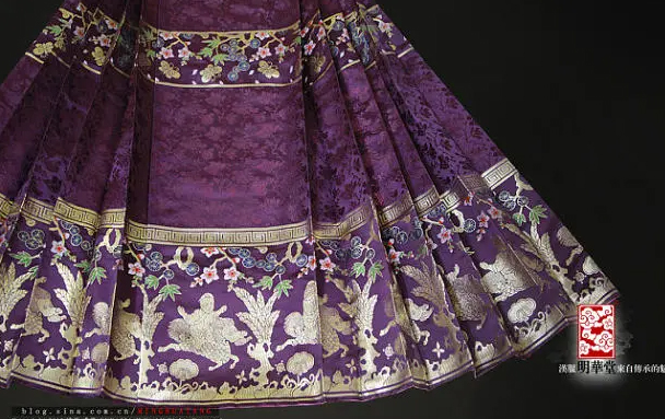 ▲明制馬面裙,紋樣多為織金或燙金工藝