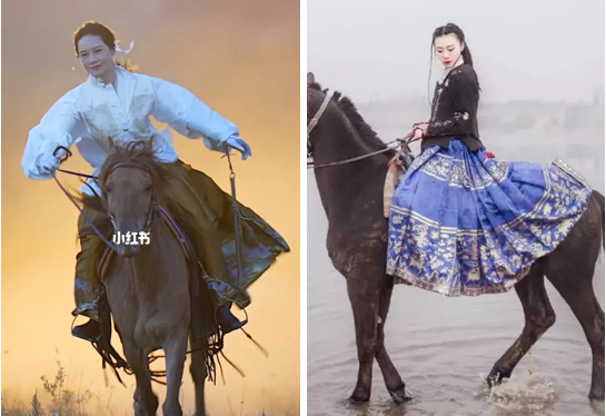 而在西方的歷史上,女子騎馬時大多穿褲子,穿裙子騎馬的話則只能側坐,不能跨坐。