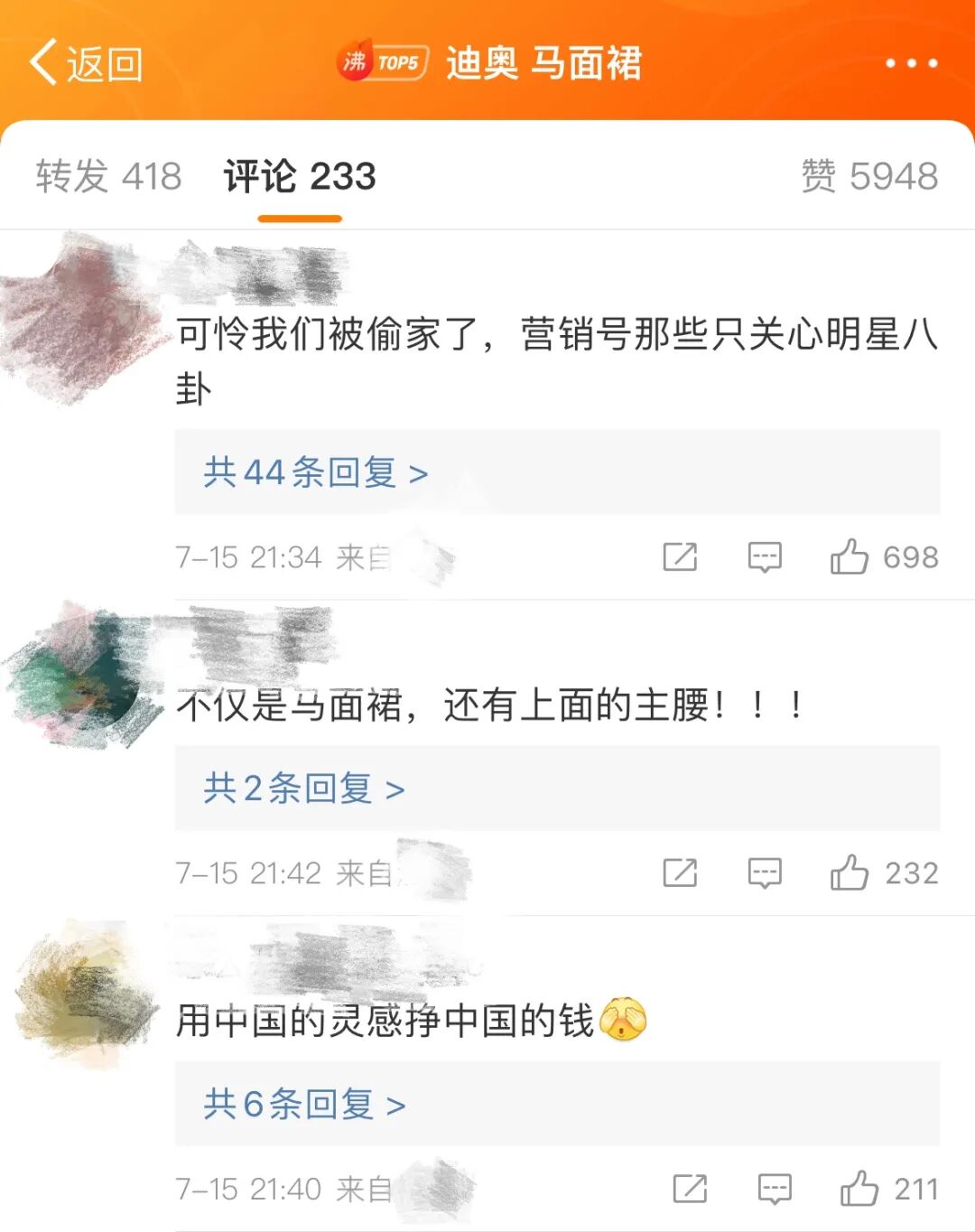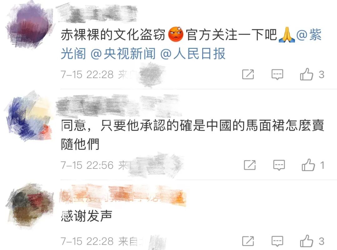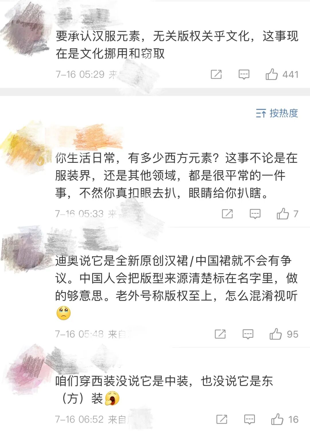 中國傳統服飾有著自身的歷史淵源和文化魅力,漢服的流行也從未終止。Dior在說明里的標志性的Dior廓形和全新的很有可能是為下一步的注冊版權做準備,如果我們現在默認這種行為不發聲,將來中國人的馬面裙是否還要定義為剽竊了Dior呢?