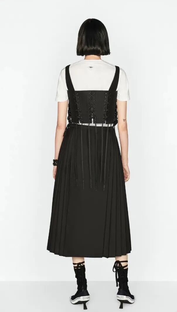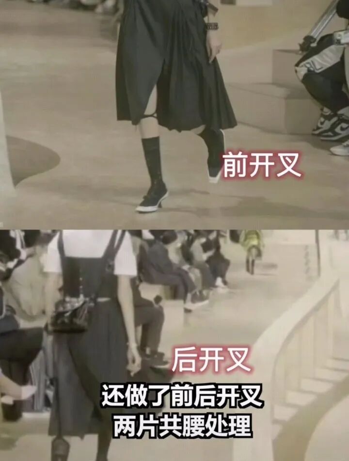 馬面裙是中國傳統服飾褶裙系列里重要的款式之一,是中國傳統服飾的重要組成部分,Dior的這款「中長半身裙」,不論是動態還是靜態,在版型都十分相似,都是以四個裙門為主,周邊輔以明顯的百褶款式。