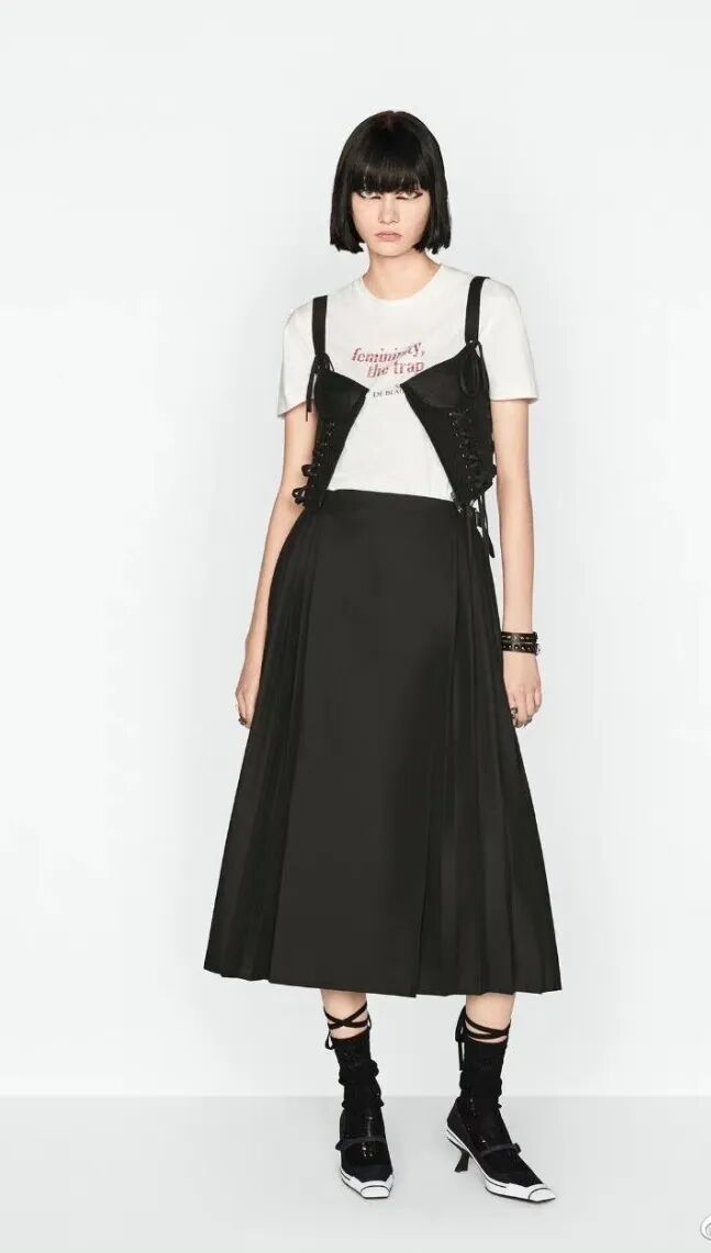 在Dior的「中長半身裙」的產品介紹頁面卻寫著:這款半裙采用標志性的Dior廓形、是一款全新的優雅時尚的單品。