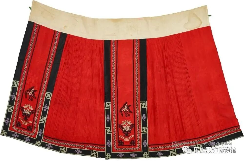 紅色提花綢飾萬字盤長紋盤帶繡邊魚鱗褶馬面裙