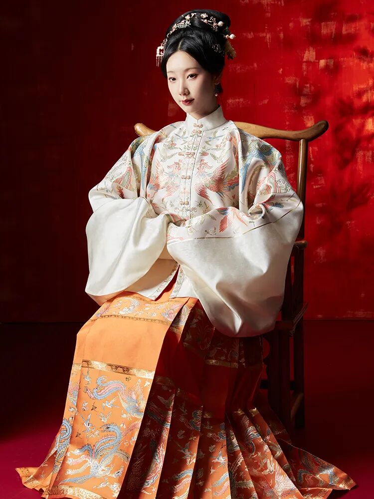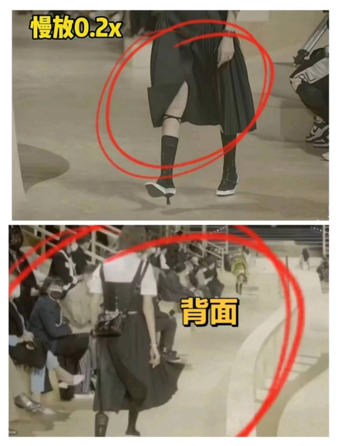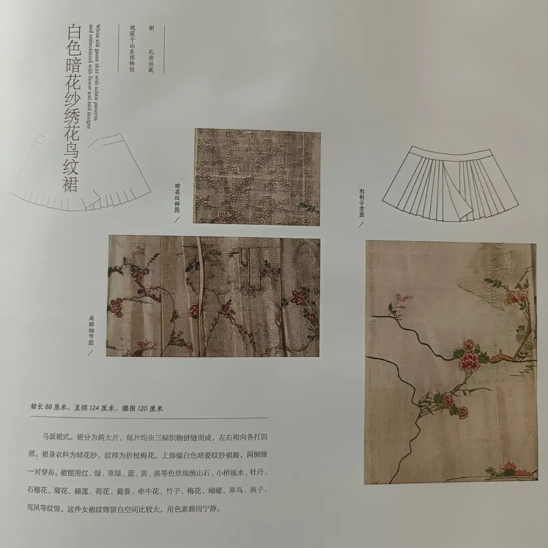 藝術(shù)可以共享,文化要有國界。單純的使用廓形是沒問題的,但是不能借鑒轉(zhuǎn)為原創(chuàng)。除了平面對比圖,菌菌還找到了視頻上身截圖和白色暗花紗繡花鳥紋裙(明—孔府舊藏)的對比圖。