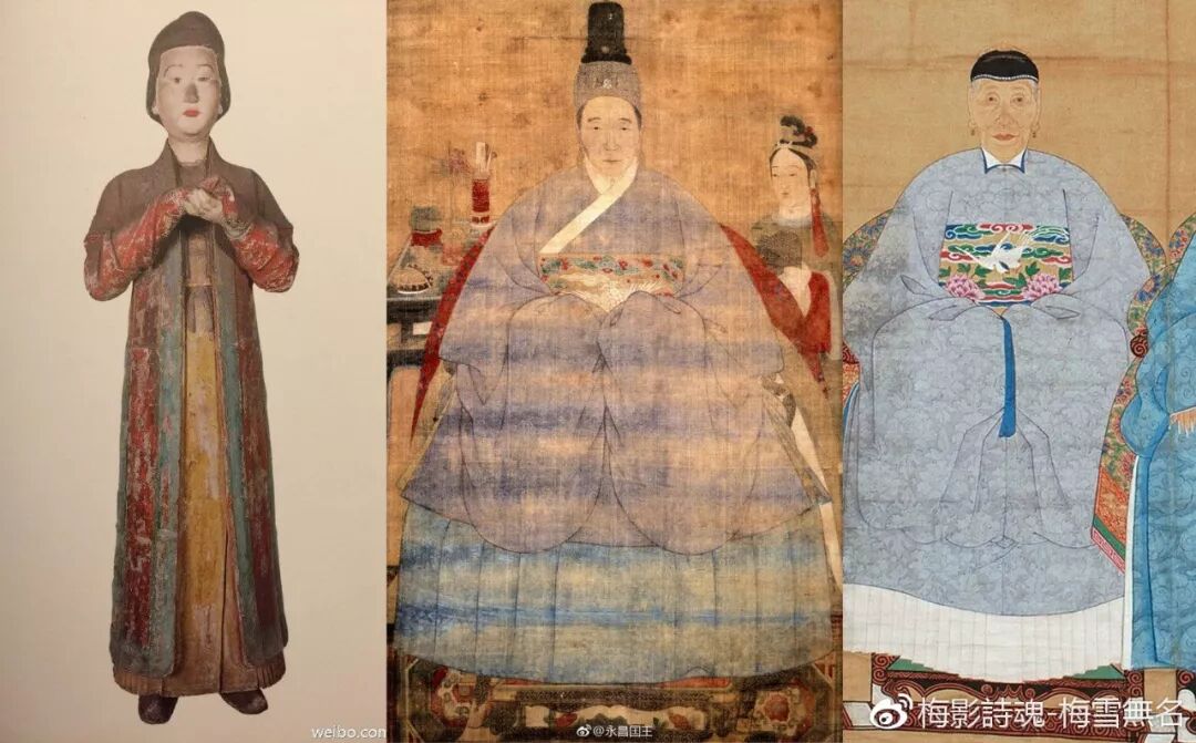 隨著衣長(zhǎng)變長(zhǎng),裙襴由寬膝襴往寬底襴發(fā)展,裙子也從蓬蓬裙轉(zhuǎn)變?yōu)樾奚碣N合的百褶裙,因?yàn)殚L(zhǎng)衣+蓬蓬裙是比較卡的,短衣服搭配蓬蓬裙比較有整體性,這是兩種不同的輪廓追求。當(dāng)然由這衣長(zhǎng)的發(fā)展,歸結(jié)出:短襖搭寬膝襴的裙子,長(zhǎng)襖搭寬底襴的裙子的結(jié)論,是很正常的。