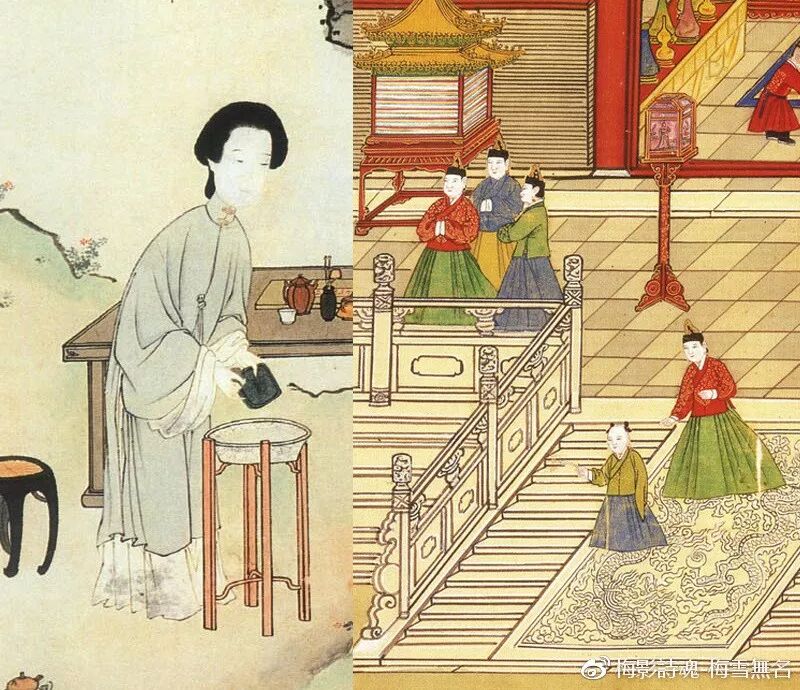 一般認(rèn)為馬面的前身是宋代的兩片裙,之後發(fā)展為在腰側(cè)打合抱褶的裙式。
