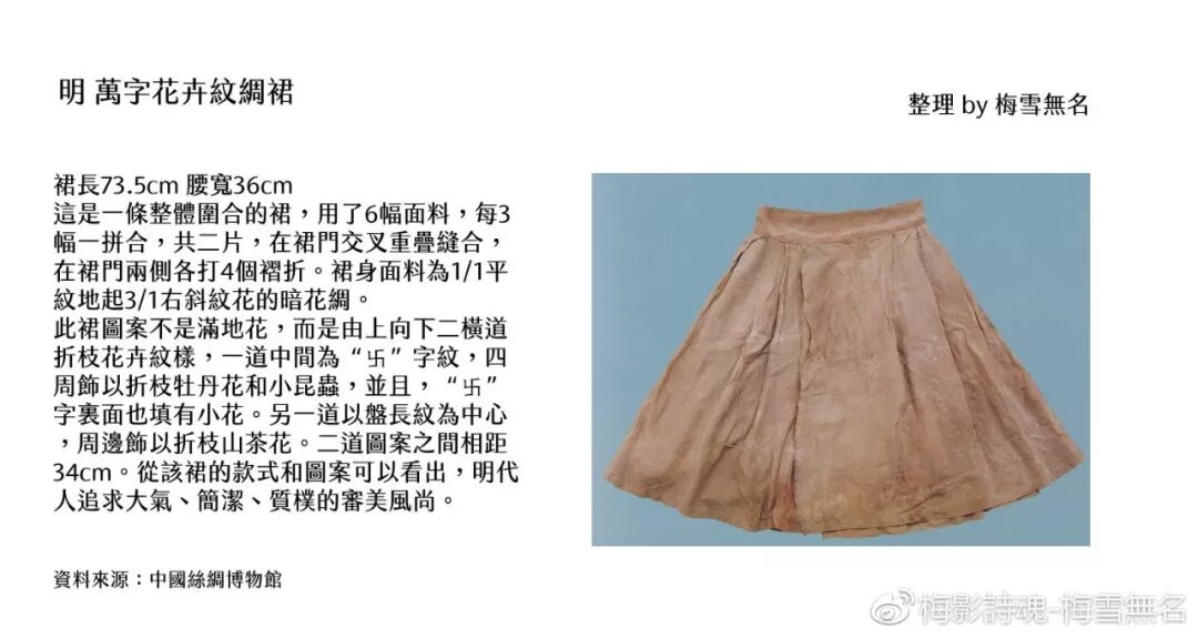 先來(lái)看一下明代的數(shù)據(jù),明初的時(shí)候裙子大概是這樣。